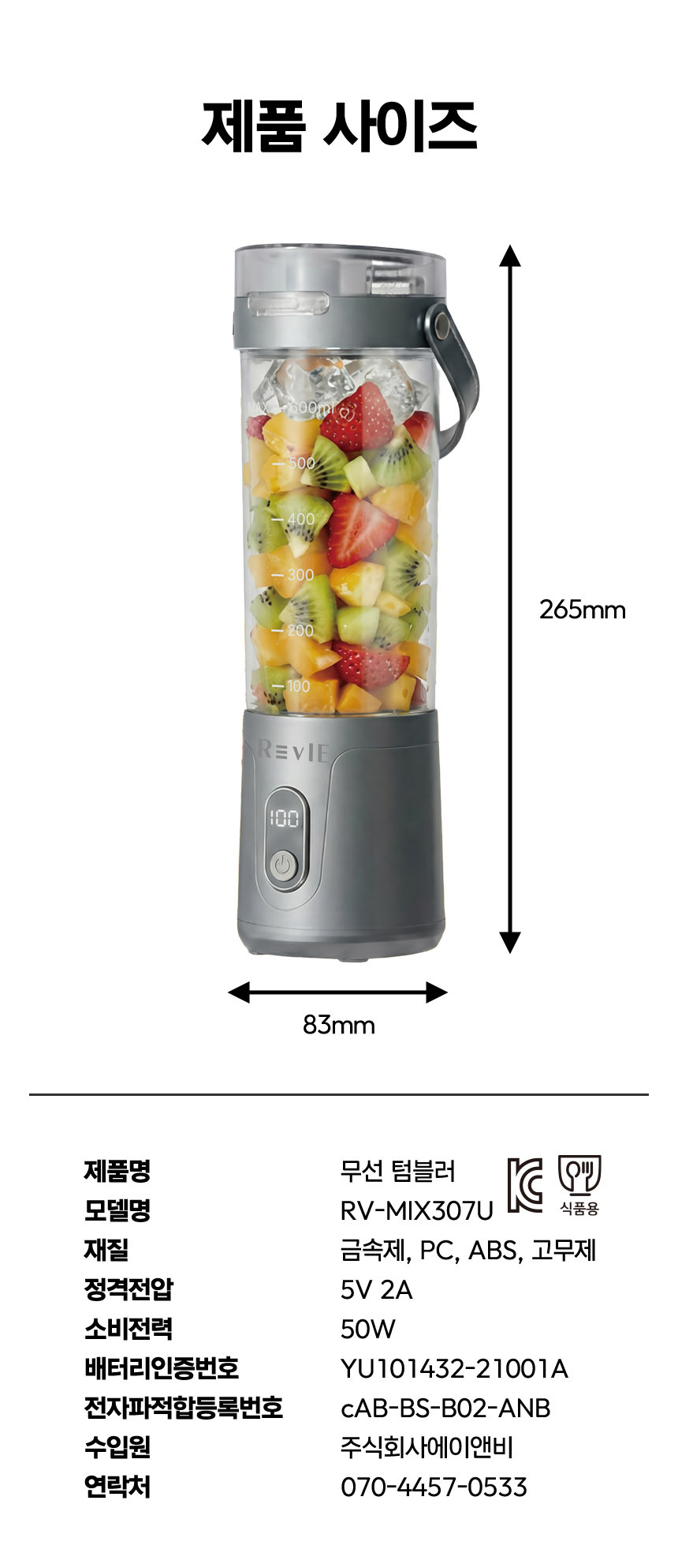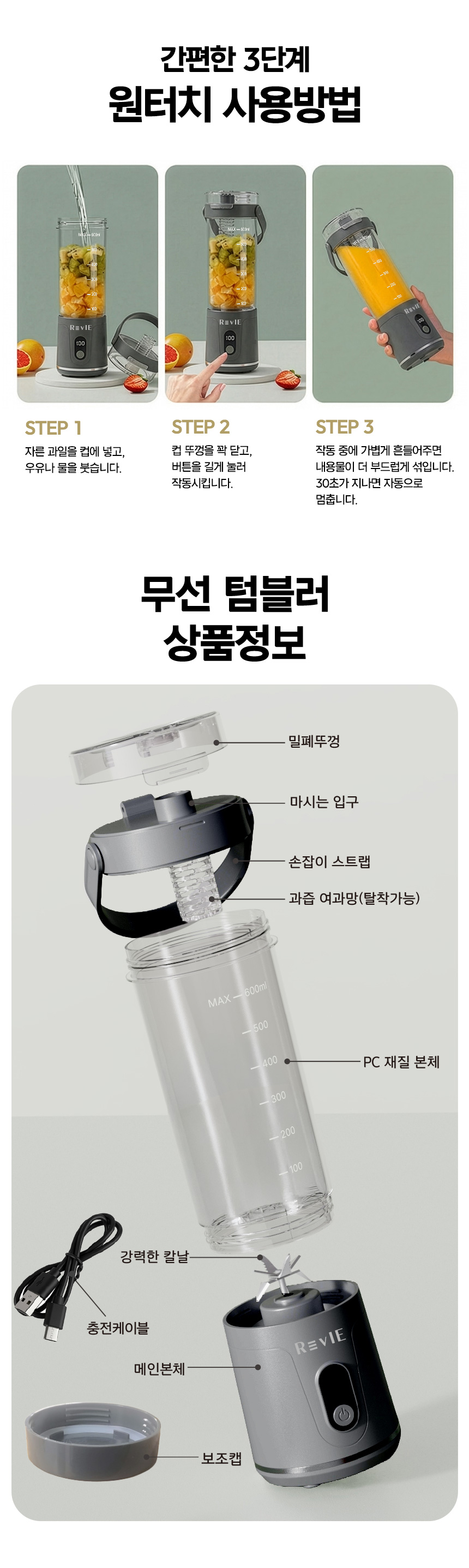 [르비에] 블렌디드 무선 텀블러 RV-MIX307U