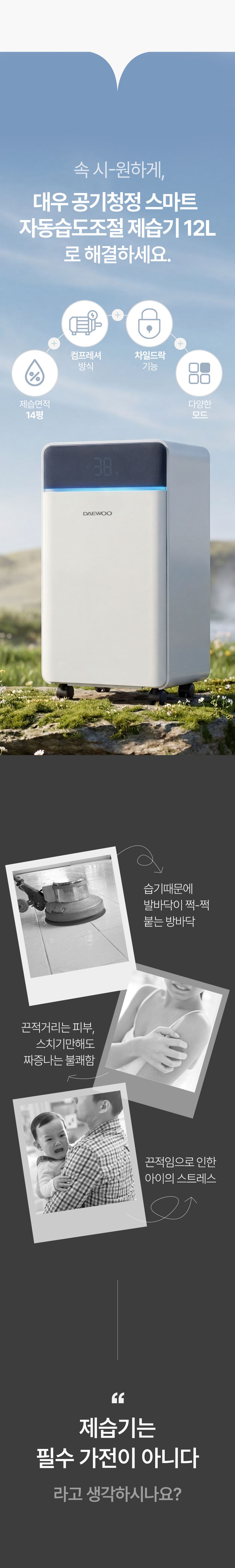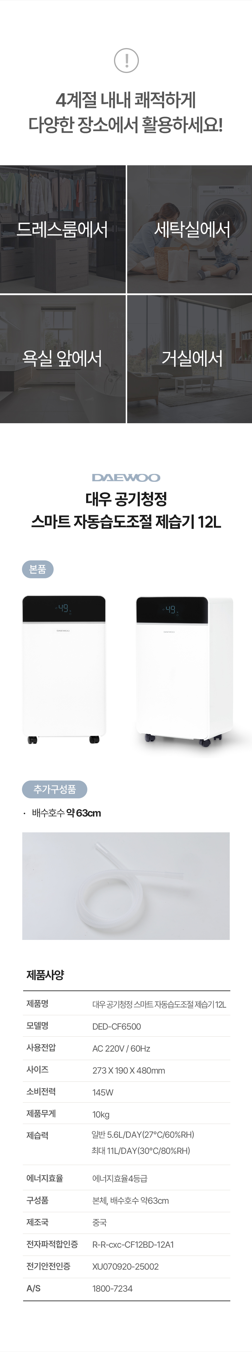 대우 공기청정 스마트 자동습도조절 제습기 12L DED-CF6500