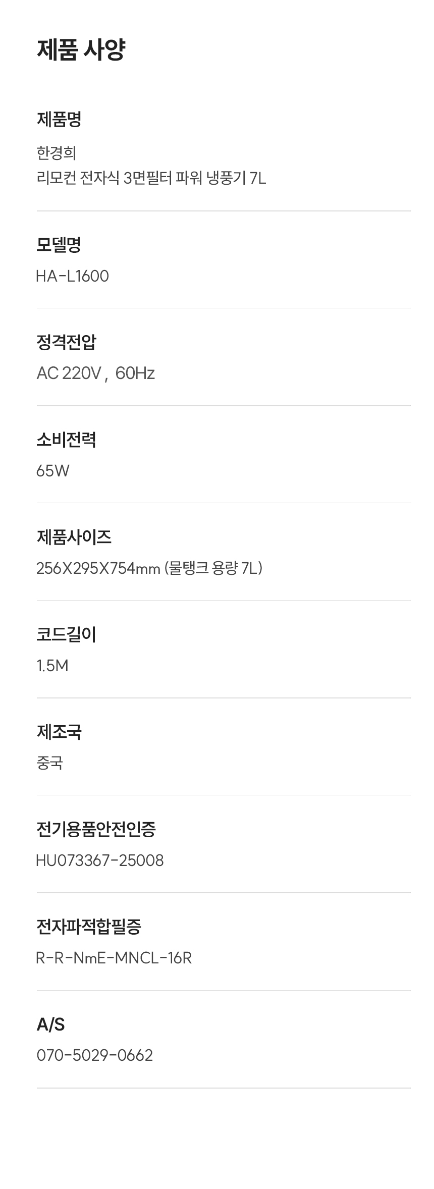 한경희 리모컨 전자식 3면필터 파워 냉풍기 HA-L1600
