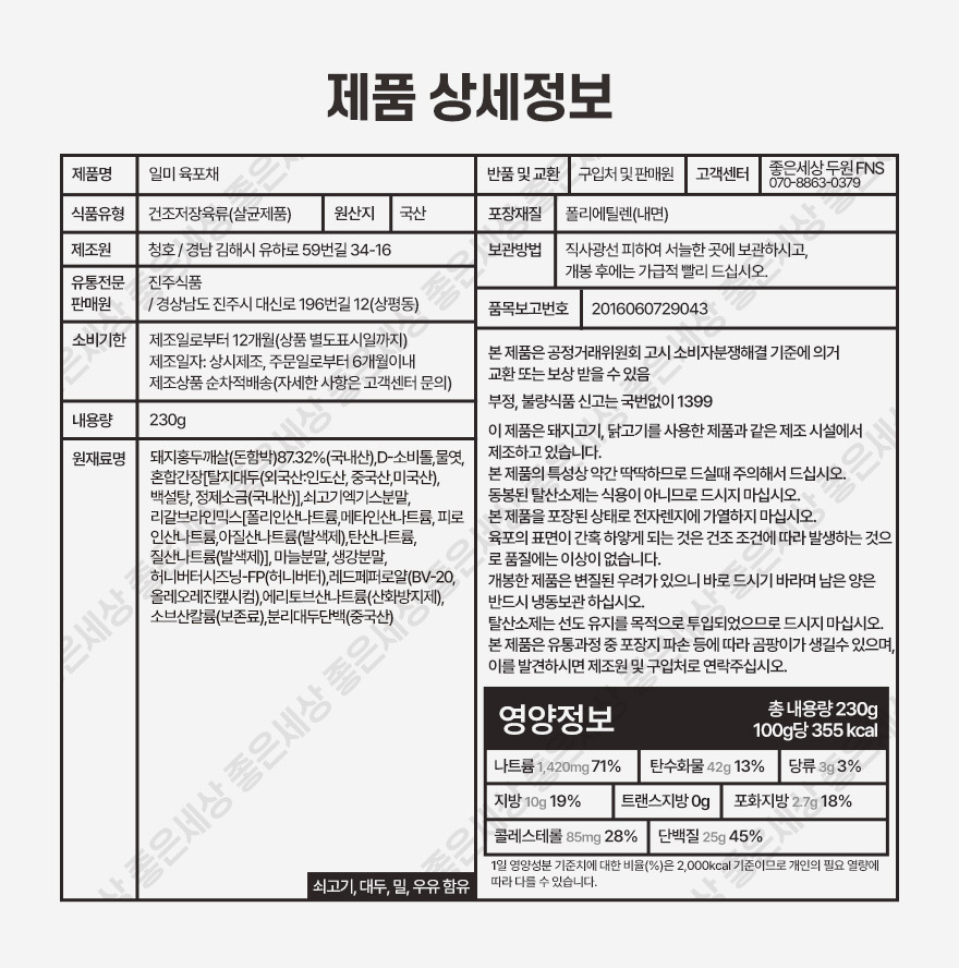 [좋은세상]일미 프리미엄 돈육포 채 국내산 230g (대용량)