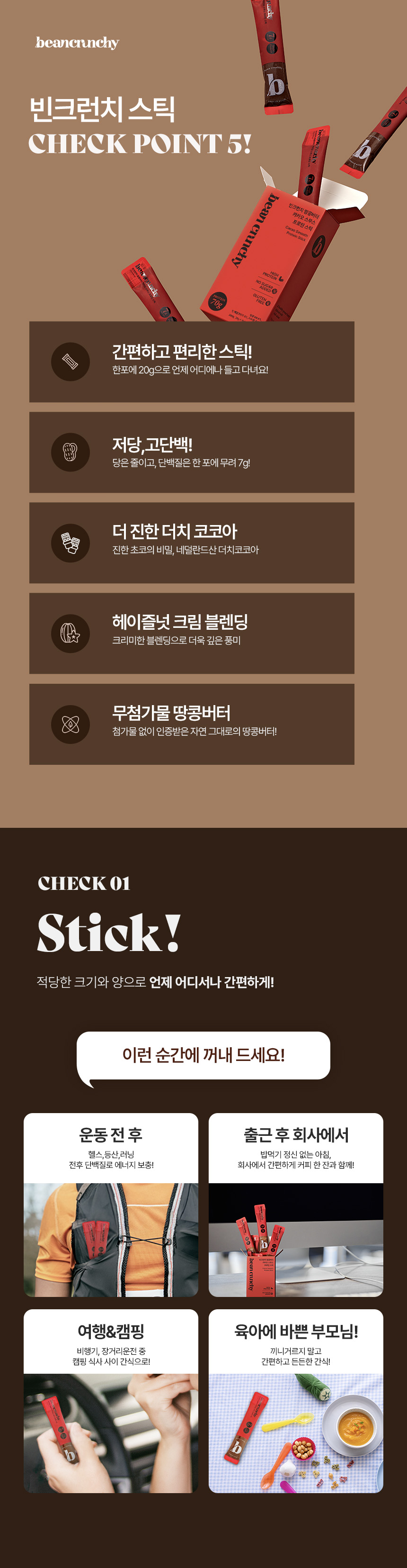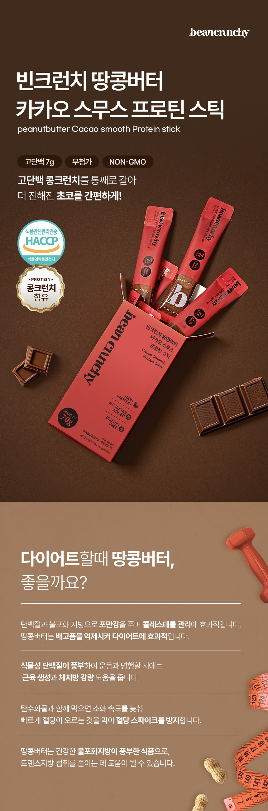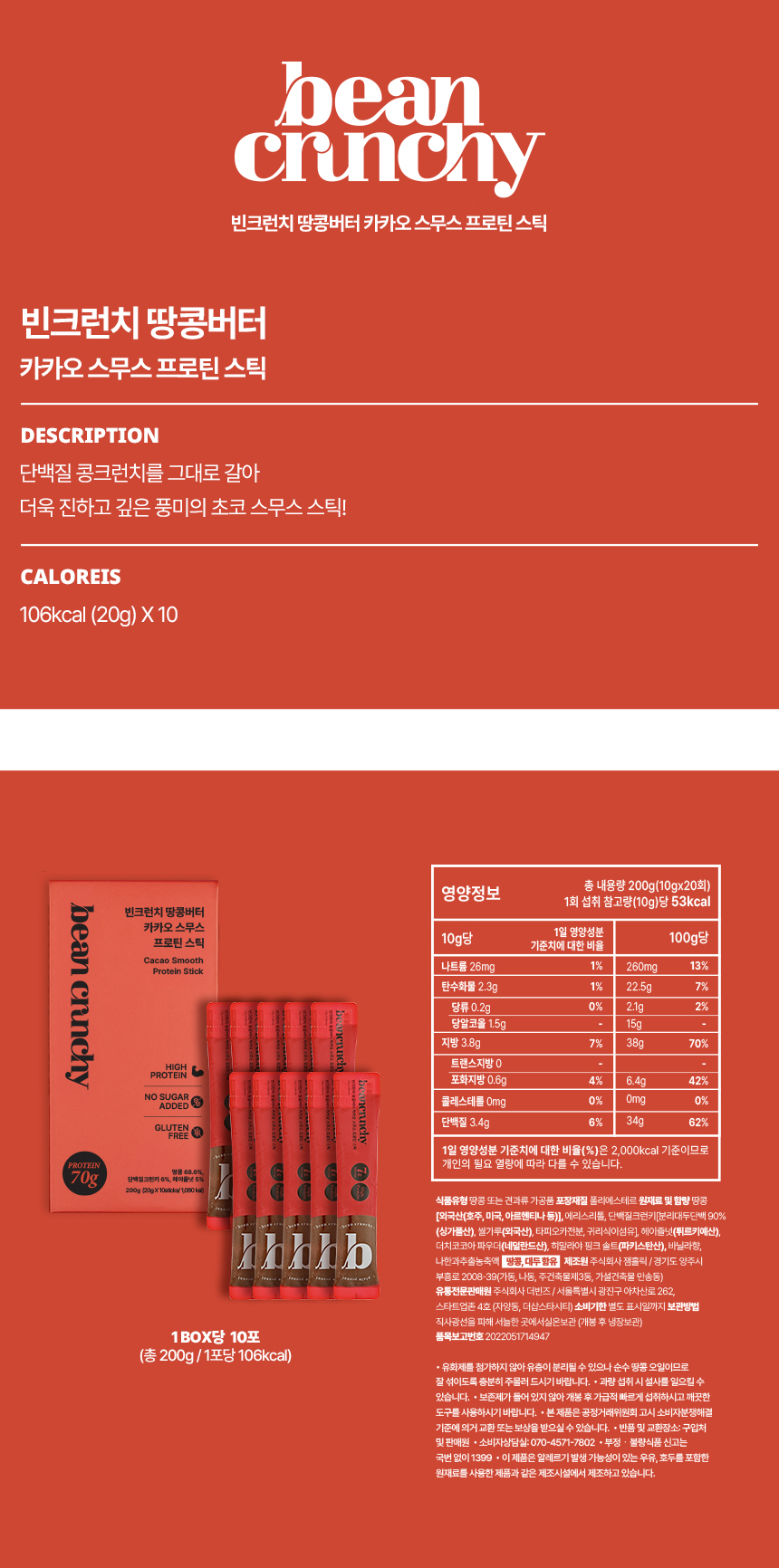 [빈크런치] 프로틴 땅콩버터 카카오 스무스 스틱 20g*10